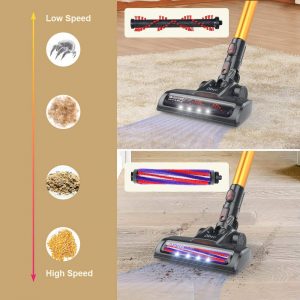 L’aspirateur Dibea D18 est livré avec plusieurs accessoires qui le rendent plus polyvalent. Parmi eux, sa brosse rotative qui est d’ailleurs idéale pour les sols fragiles tel que le parquet. Cette brosse à la particularité d’avoir un angle de rotation à 270° et d’être plate. Elle vous permet donc d’aspirer sans efforts dans les coins et recoins mais également sous les meubles et les lits. Elle possède également un éclairage LED. Celui-ci peut être pratique lorsque vous aspirez sous les lits et dans les endroits sombres.
